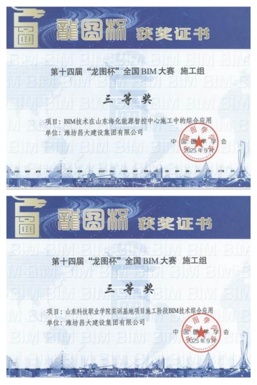 二則是,由中國圖學(xué)學(xué)會(huì)舉辦的第十四屆“龍圖杯”全國BIM大賽公布了獲獎(jiǎng)結(jié)果。集團(tuán)公司申報(bào)的《BIM技術(shù)在山東?;茉粗强刂行氖┕ぶ械木C合應(yīng)用》、《山東科技職業(yè)學(xué)院實(shí)訓(xùn)基地項(xiàng)目施工階段BIM技術(shù)綜合應(yīng)用》均獲三等獎(jiǎng)。實(shí)現(xiàn)歷史新突破。